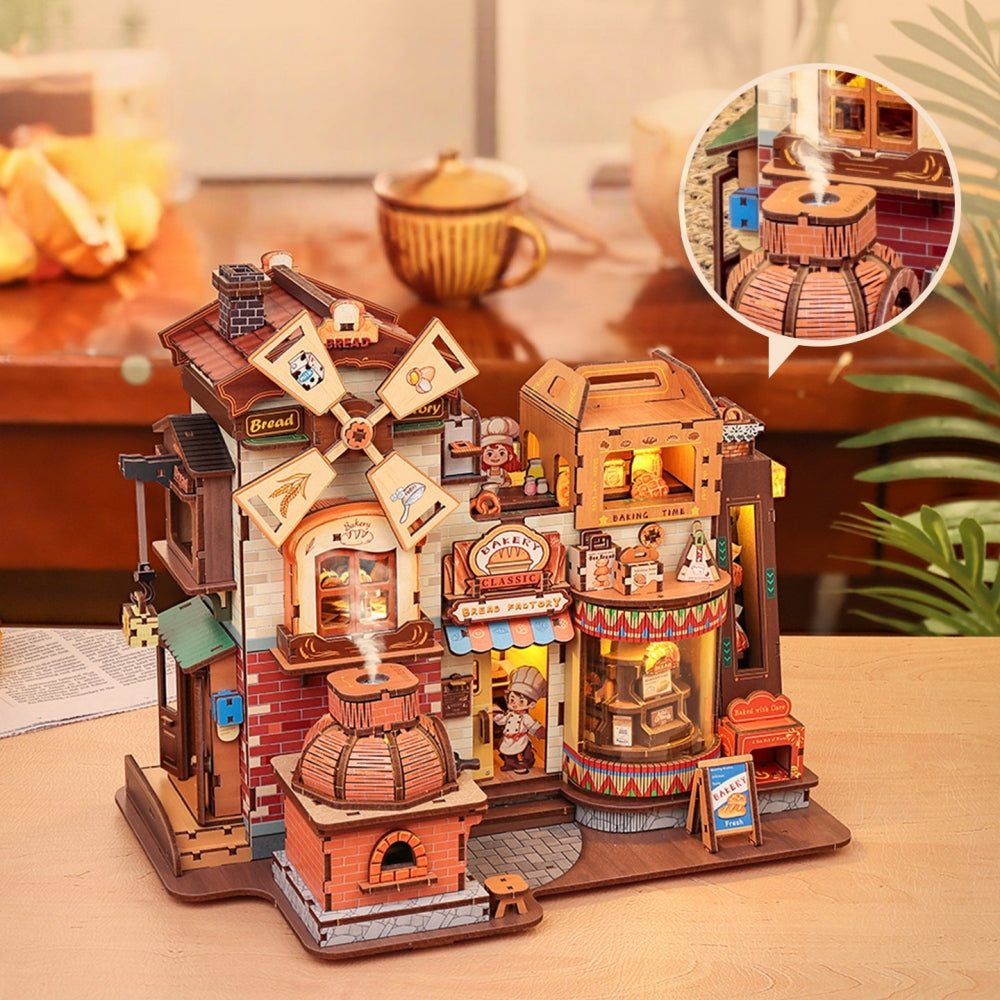 Step into a world where craftsmanship meets comfort. This intricate 3D wooden model depicts a charming European-style windmill bakery, complete with a classic brick oven and shelves of fresh-baked treats. But there's more than meets the eye—this model isn't just a decoration; it's a sensory retreat.