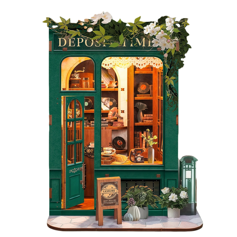 Deposit Time is a sanctuary for the past, where premium coffee and vinyl records create the luxury of slow living. The rich, emerald-green facade invites you to pause, making the final piece a sophisticated reminder to find time for "Leisure" and reflection.