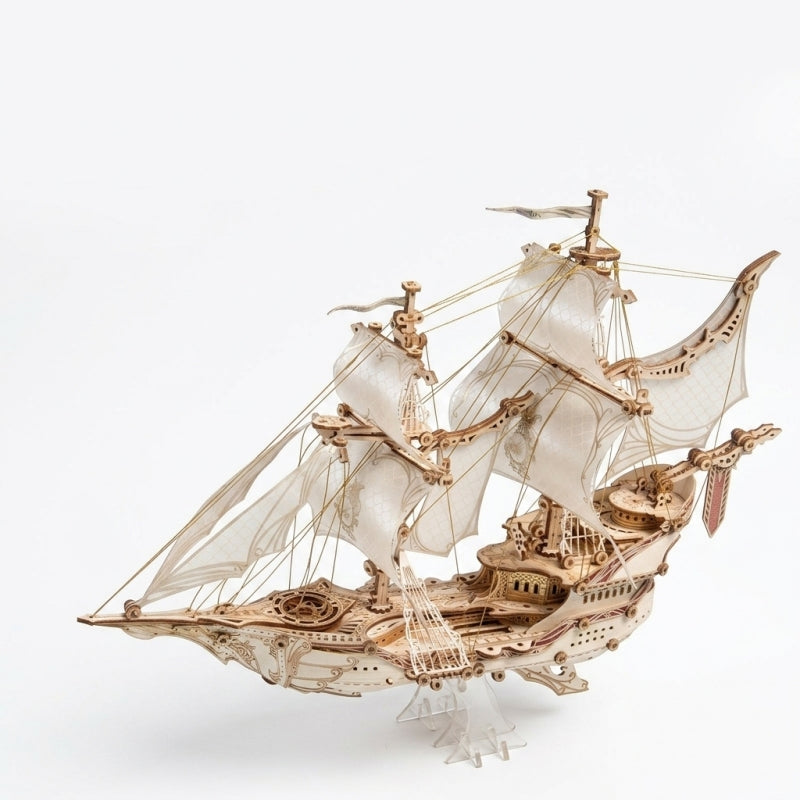 Embark on a mystical journey with the Fantasy Elf Ship, an exquisite 3D wooden model that blends Victorian elegance with arcane magic. Crafted from premium basswood and specialty textured papers, this collector-grade kit features intricate laser-etched details and ingenious interlocking joinery.