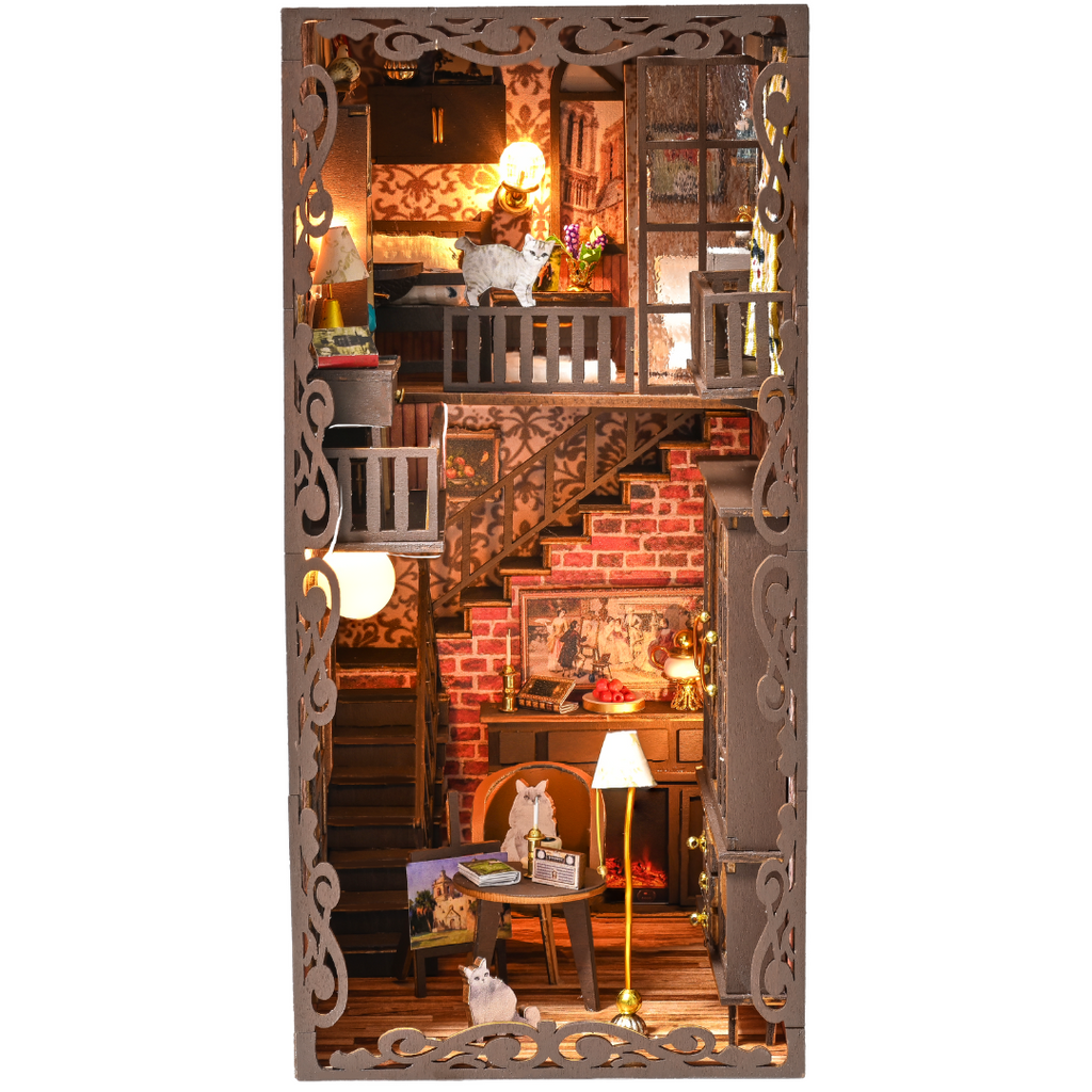 Featuring a glowing fireplace, a cheerful snowman, and intricate holiday accents, this book nook captures the essence of Christmas warmth and joy. Perfect as a seasonal decoration or a creative gift, it adds a touch of whimsy and wonder to any bookshelf or display.